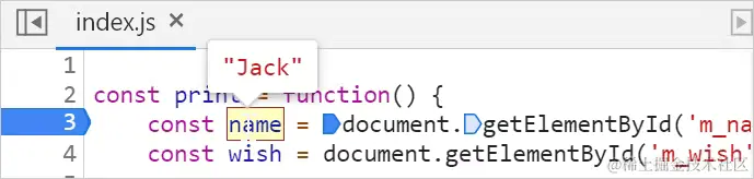 检查代码中的值是识别代码中错误的主要方法。在单步执行时,我们只需要将鼠标悬停在变量上即可检查值。