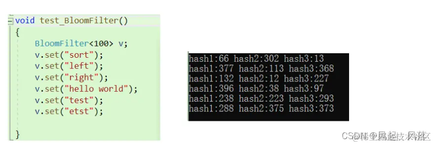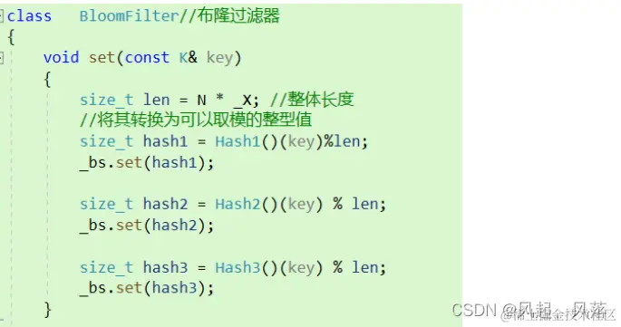 _bs作为题目一的实现的位图结构 通过调用对应hash1 hash2 hash3中的operator() 的不同实现 将传入对应的字符串转换为不同的整形,在使用位图插入在不同的映射位置