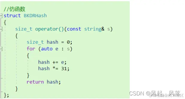 BKDRHash算法在哈希中的 针对string情况使用过 , 当需使用字符串转化为整形时,将字符串中所有字符相加 ,用此确定对应的key 将BKDRHash作为缺省值 ,传给 hash1