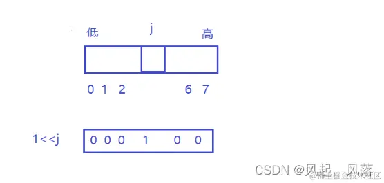 j 代表要寻找对应比特位的位置 ,想要将其置为1 <<是低到高的移位 1<<j 即 除了j位置 其他位置 都为0