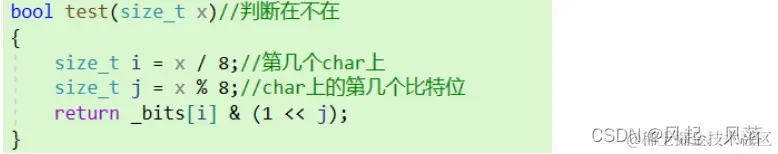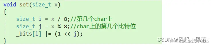 size_t j = x % 8;//char上的第几个比特位