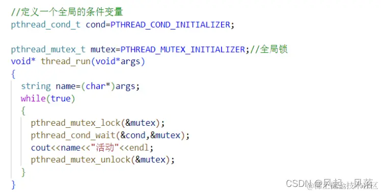 若将条件变量其定义为全局变量,则可以使用PTHREAD_COND_INITIALIZER 进行初始化