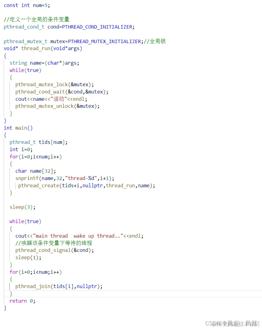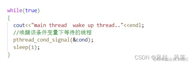 pthread_cond_signal 代表 唤醒该条件变量下等待的线程