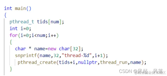创建5个线程, 通过调用snprintf 将 pthread-%d 字符串传入name中, name作为回调函数的参数args