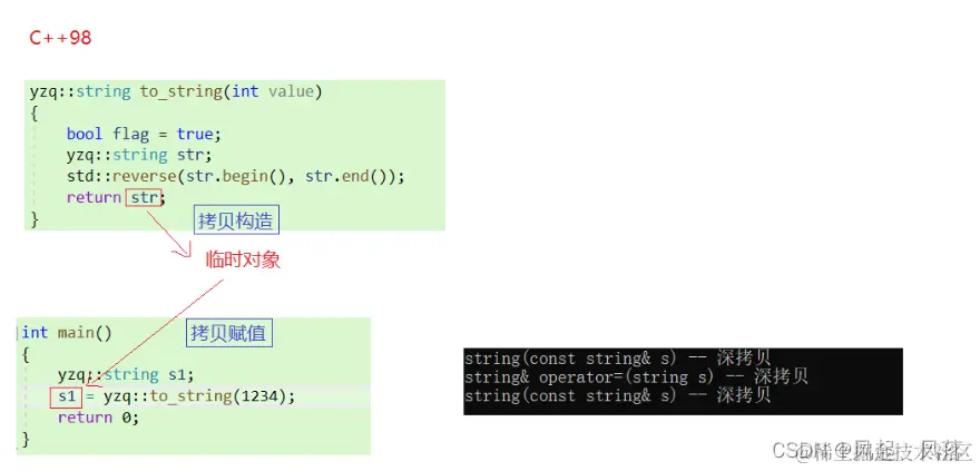 C++98中 没有移动赋值和移动构造 ,只有参数为左值 的赋值重载(operator=)和拷贝构造