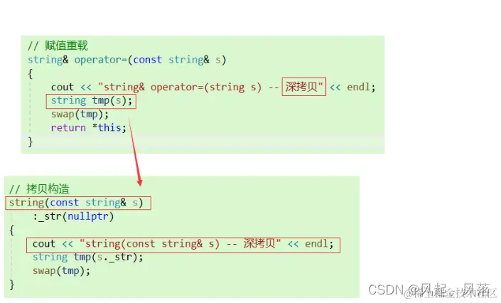 本来只有两次深拷贝,但是由于调用拷贝赋值时,内部又进行一次拷贝构造,所以导致最终进行三次深拷贝 这里编译器是不能优化的,因为优化的前提是 连续的构造或者拷贝构造