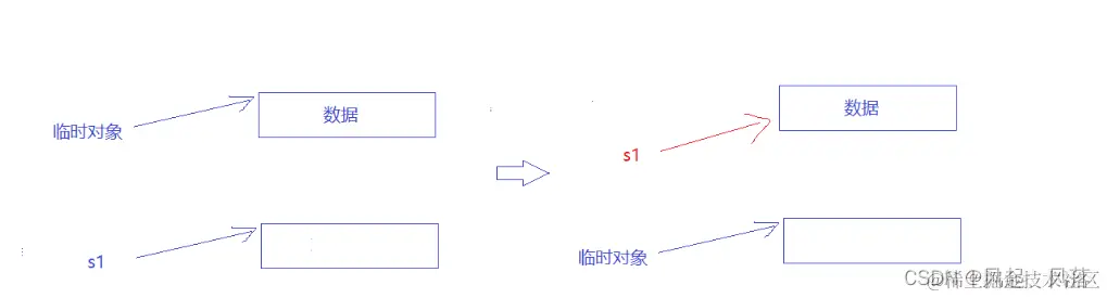 如:将临时对象所指向的数据 转移到s1 中,同时可将废弃数据放入临时对象(将亡值)中