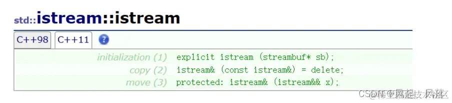 istream在C++11中,不期望被拷贝,(拷贝会涉及缓冲区等问题)