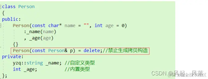 默认成员函数,如果不写会默认生成,加入delete后可禁止生成
