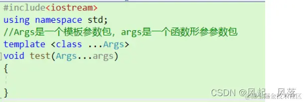 声明一个参数包Args...args,这个参数包中包含0到任意个模板参数