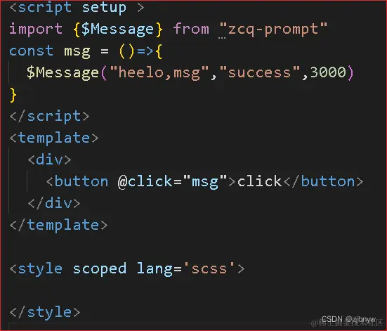 使用的话直接就:npm install zcq-prompt 就ok了,后面的步骤就直接引入 使用就好了 上面有图的!