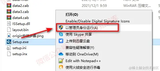 3.右键Setup.exe文件,选择以管理员身份运行。