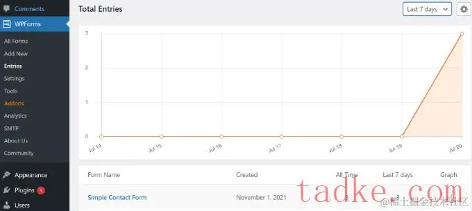 在这里,您只需单击顶部的“全部删除”选项即可删除表单条目。