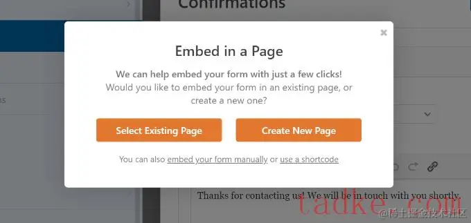 接下来,将打开一个弹出窗口,要求您创建新页面或选择现有页面。