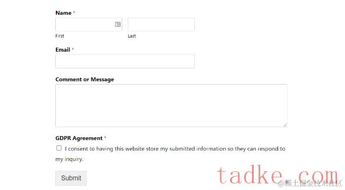 只需访问您的网站,即可查看您的GDPR-Ready WordPress表单的运行情况。