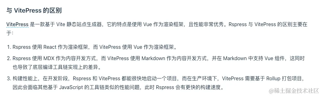 风格样式上与 VitePress 差不太多,有搭建文档站点的需求的同学可以尝试一下,构建速度上非常快,内置了许多开箱即用的能力(这点比 VitePress 好很多)