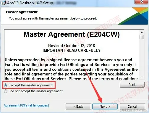 3.选中【I accept the master agreement】我接受许可协议,然后【Next】下一步。