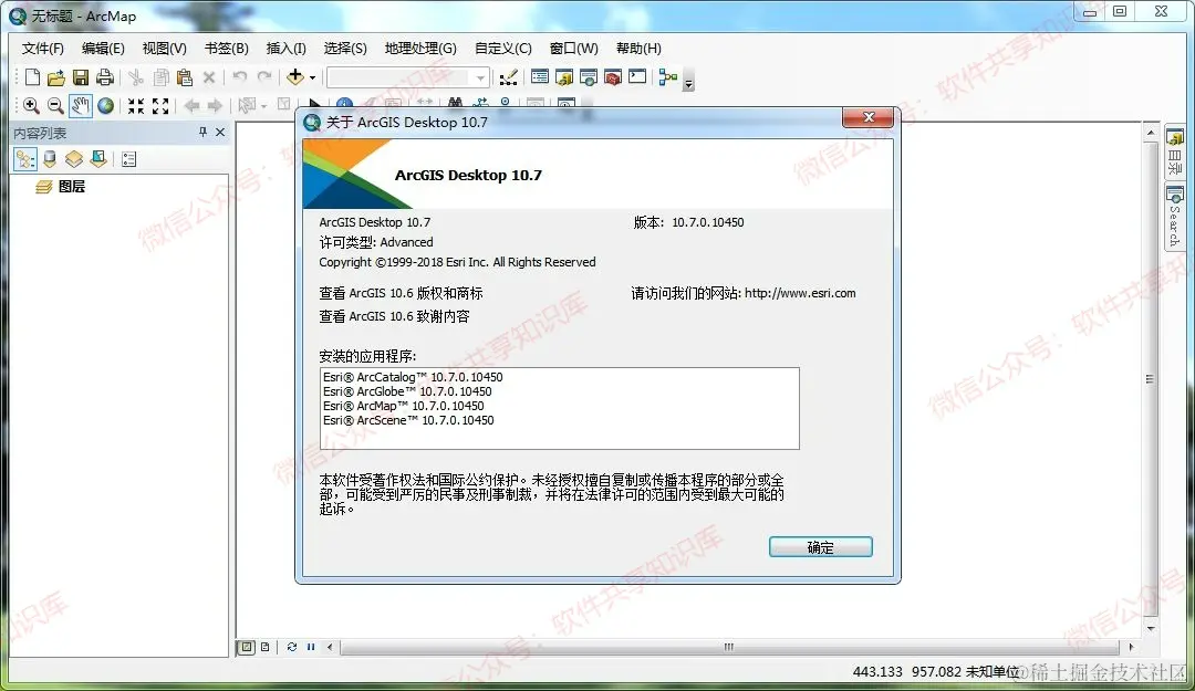 软件介绍: ArcGis是美国Esri公司研发的构建于工业标准之上的无缝扩展的GIS产品家族。它整合了数据库、软件工程、人工智能、网络技术、云计算等主流的IT技术,宗旨在为用户提供一套完整的、开放的企业级GIS解决方案。无论是在桌面端、服务器端、浏览器端、移动端乃至云端,ArcGis10都有与之对应的组件,并且可由用户自由定制,以满足不同层次的应用需求。