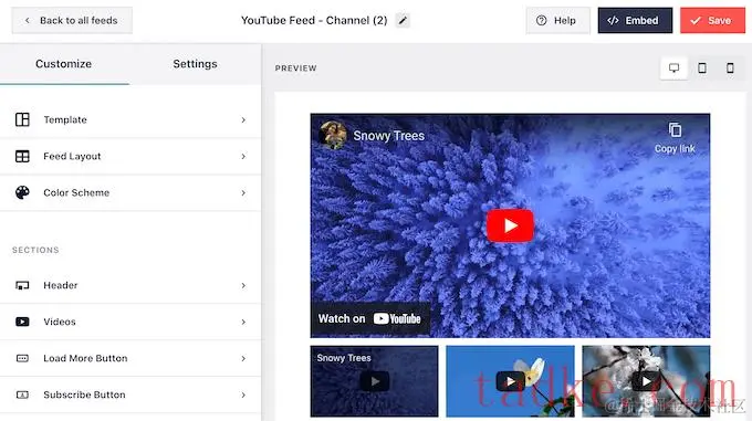 在将WordPress连接到你的YouTube频道后,你可以使用Smash Balloon的用户友好的编辑器来定制视频的外观。