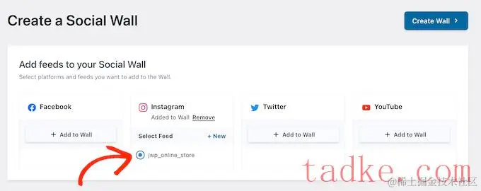 对于想要添加的每个社交媒体平台,只需点击“添加到墙”即可。
