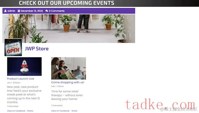 如果您定期举办面对面或在线活动,则最好将它们创建为页面或组中的活动。然后,访问者可以将自己标记为感兴趣或参加活动,邀请其他人,并在自己的页面上分享活动。