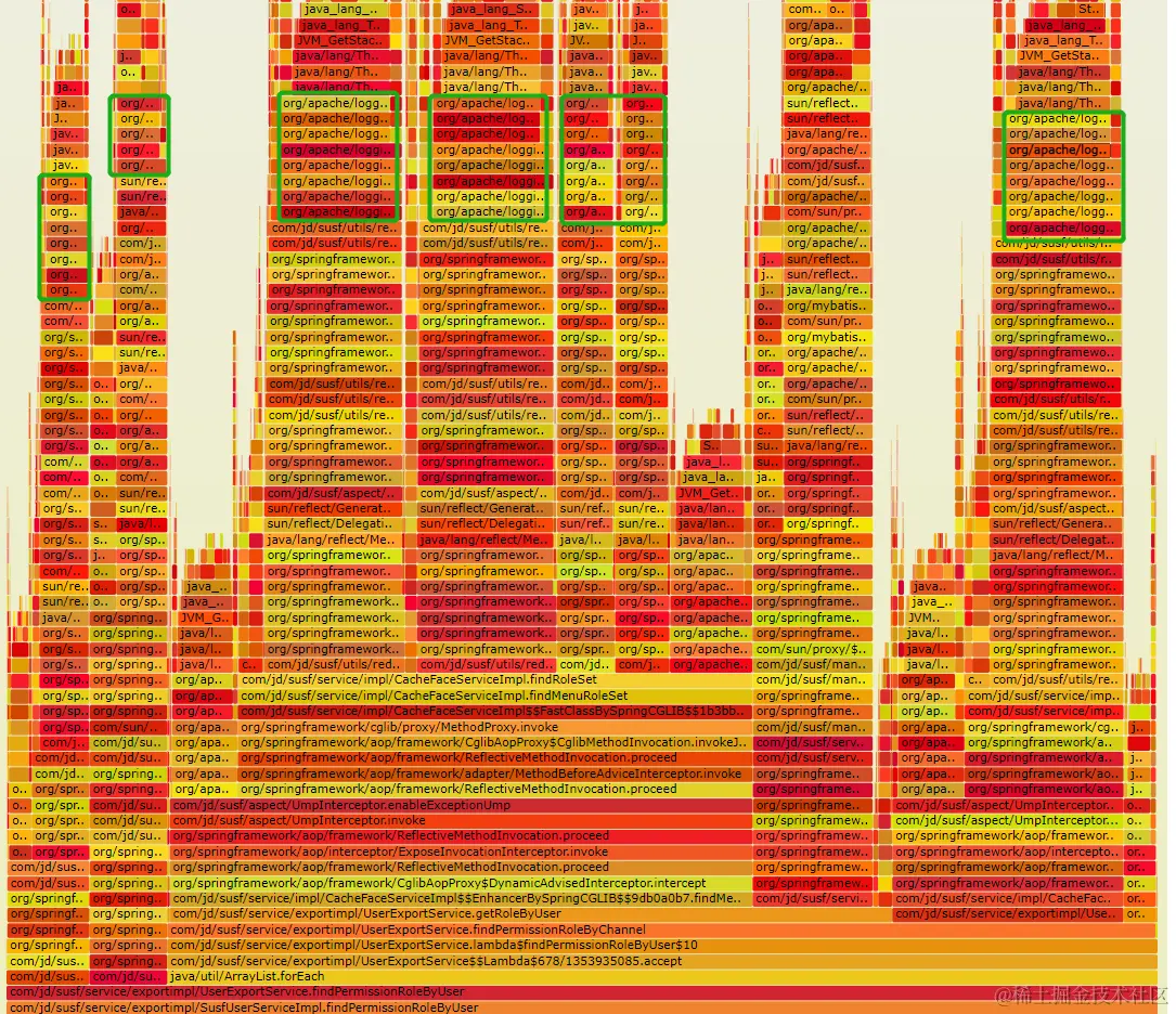 1)使用火焰图分析应用的CPU如下,其中log4j2日志占了40%左右CPU,初步怀疑是log4j2的问题。