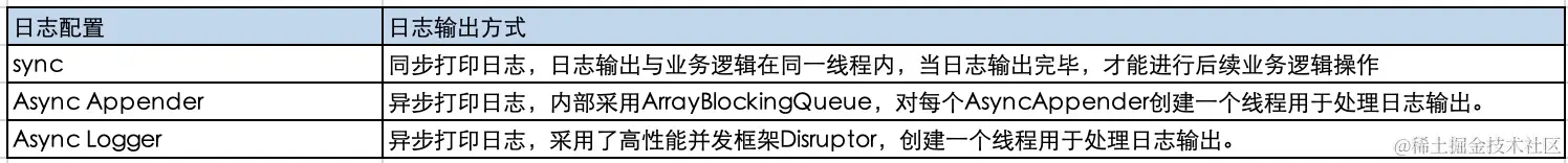 - 不要在开启了全局同步的情况下,仍然使用AsyncAppender和AsyncLogger。这和上一条是同一个意思,也就是说,如果使用异步日志,AsyncAppender、AsyncLogger和全局日志,不要同时出现。