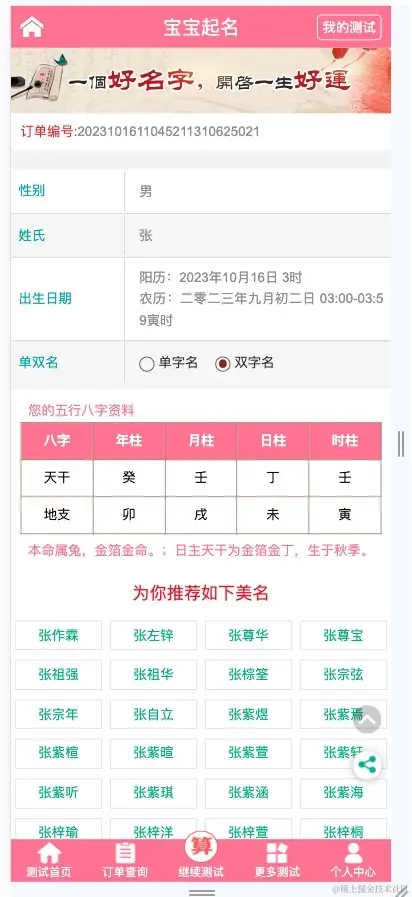 页面设计的是不是还不错,除了起名之外,我发现还有其他许许多多功能,有什么流年运势,八字合婚,我去妥妥的二次转化变现啊,有点强了~30块买的挺值的
