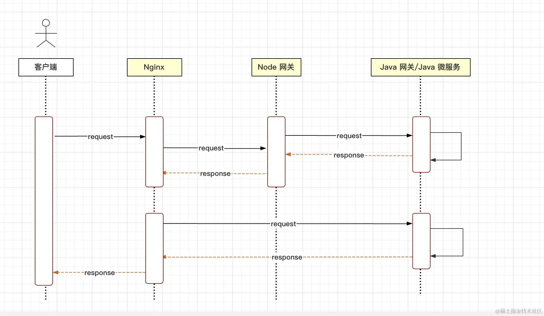 当nginx监测到/gateway-api时,将请求转发到node-gateway(node的网关中)