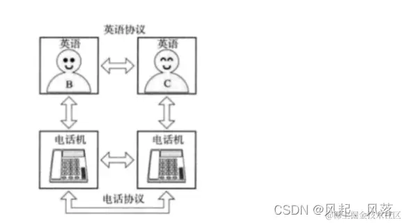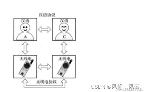 假设你和你的朋友,分别在两个不同的楼内,你使用你宿舍的台式机给你朋友宿舍的台式机打电话 在打电话这个过程中,你认为你和你的朋友在进行直接通信 实际上是 你把话说给了你的台式机,通过电话协议,将信息传递给另一个台式机,此时你朋友的台式机把收到的数据进行协议解析,把声音播放到你朋友的耳边