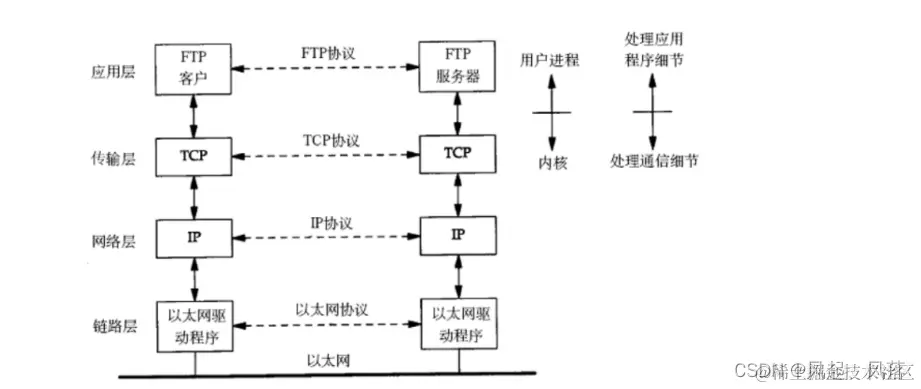 采用的网络协议栈为 TCP/IP五层(或四层)模型,TCP/IP脱胎于OSI七层模型,将会话层 表示层 应用层 看作为应用层 五层:物理层 数据链路层 网络层 传输层 应用层 四层: 数据链路层 网络层 传输层 应用层