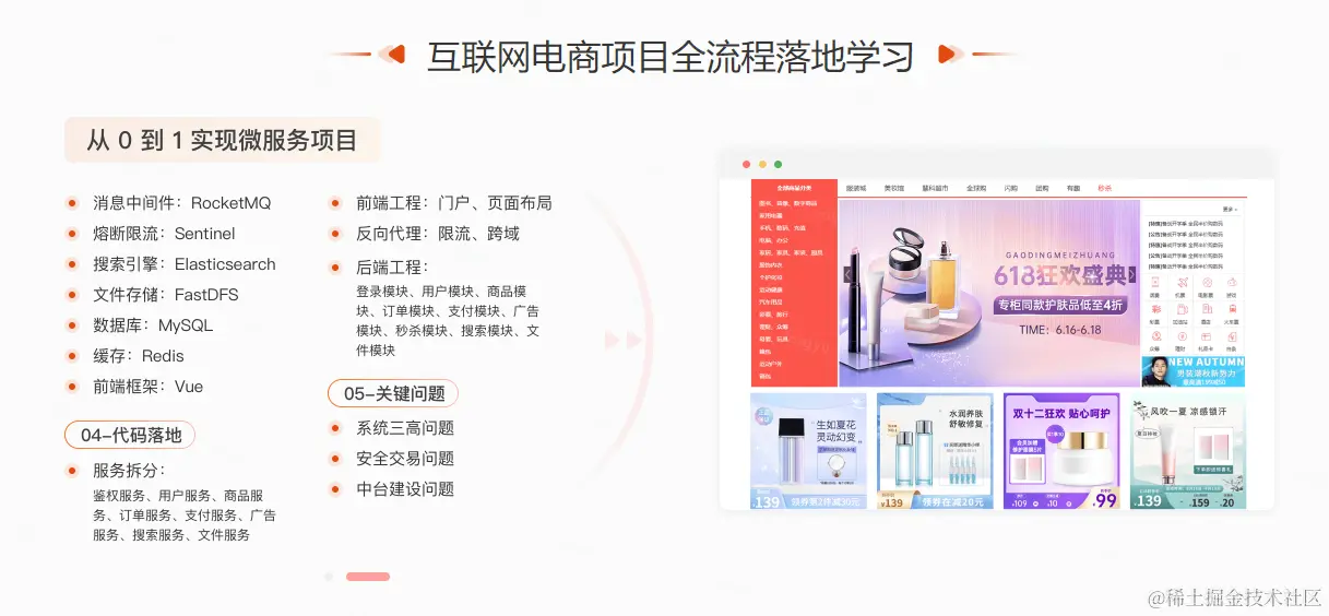 掌握电商业务场景下常用的技术组件,如 Redis、Elasticsearch 及其他常用微服务技术组件