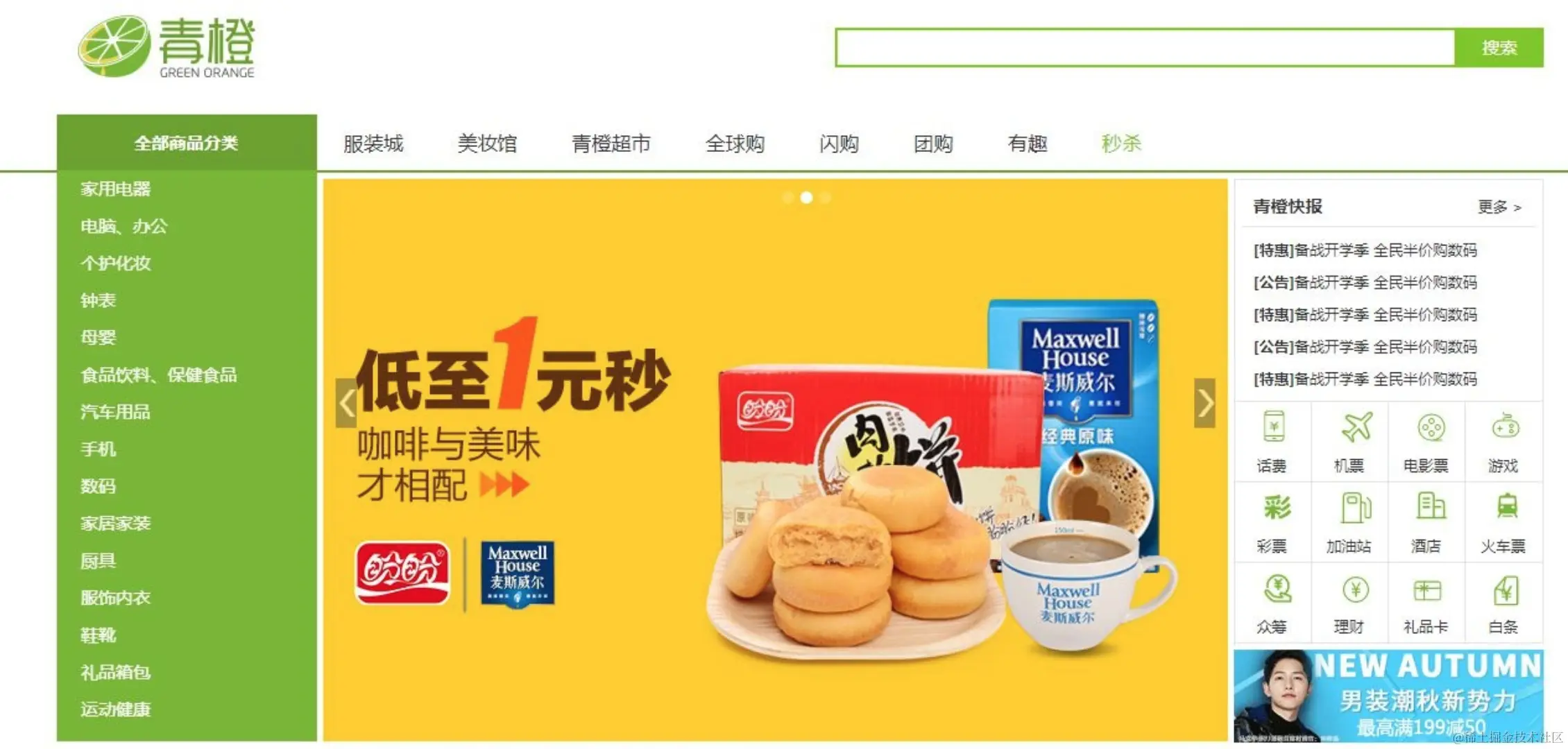最近身边有朋友从某机构那里报名了Java高级工程师的教程,课程更新到了最后的商城项目实战课程,于是我和我朋友一块看了下体系课程中的这个商品项目,但是当我看到项目预览的效果时,一股莫名的熟悉感觉就来了,商城项目主题的颜色是绿色,这让我想起了以前看过的另外一家知名机构的培训项目《青橙商城》的效果,仔细观看,感觉好像就是一个东西。后来看到代码目录结构的那一刻,确定了,这个商城项目就是基于这个青橙商城项目改的。