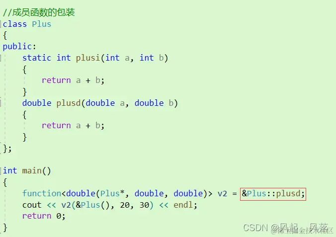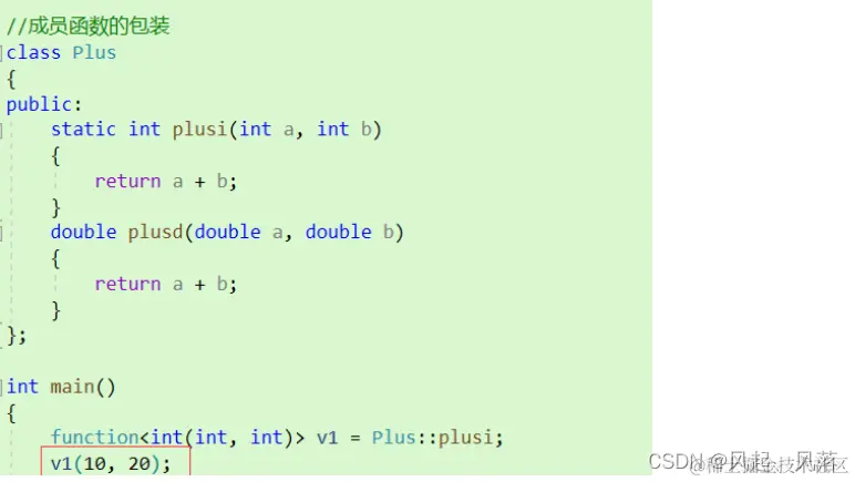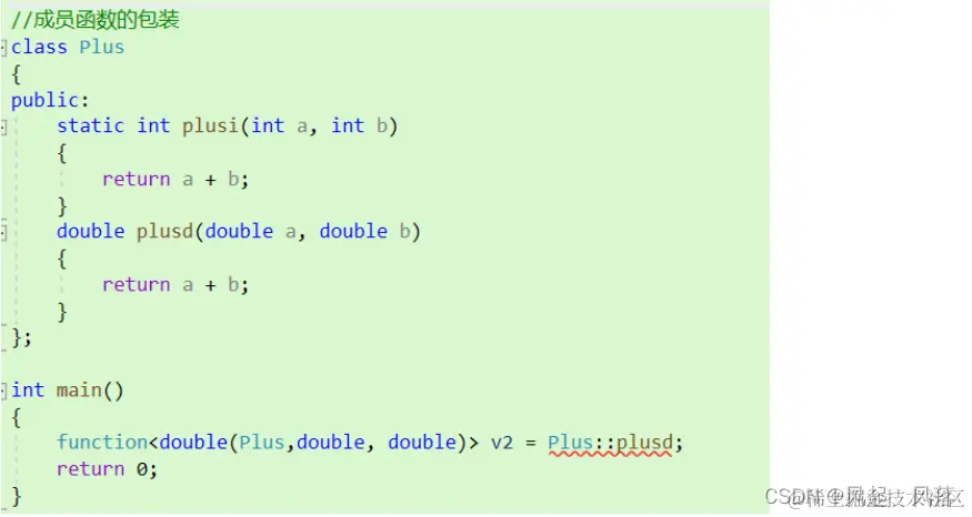 对于静态成员函数,可以直接使用包装器 function 通过Plus这个类去寻找到plusi 这个函数 ,对包装器 进行初始化即可