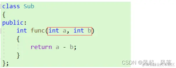 在Sub类中的 func函数,虽然看似只有两个参数,但是还有一个隐藏的this指针存在