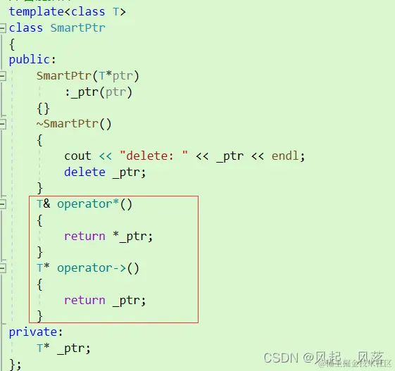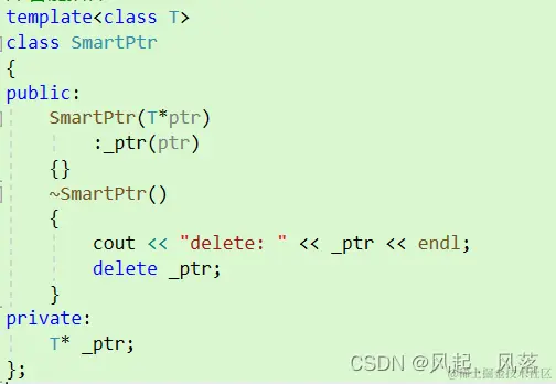创建一个私有的成员变量 _ptr指针 在构造函数时,将指针保存起来 在析构函数时,将指针释放