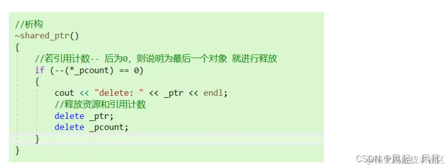 当其中一个对象要析构时,就先看引用计数,若引用计数减1还大于0,就要什么都不管 若引用计数减1为0,则表示最后一个管理这块资源的对象,就可以将其释放掉