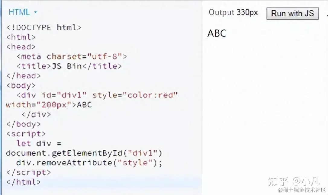 在运行之前div有个style="color:red"的属性,在运行之后这个属性就被删除了
