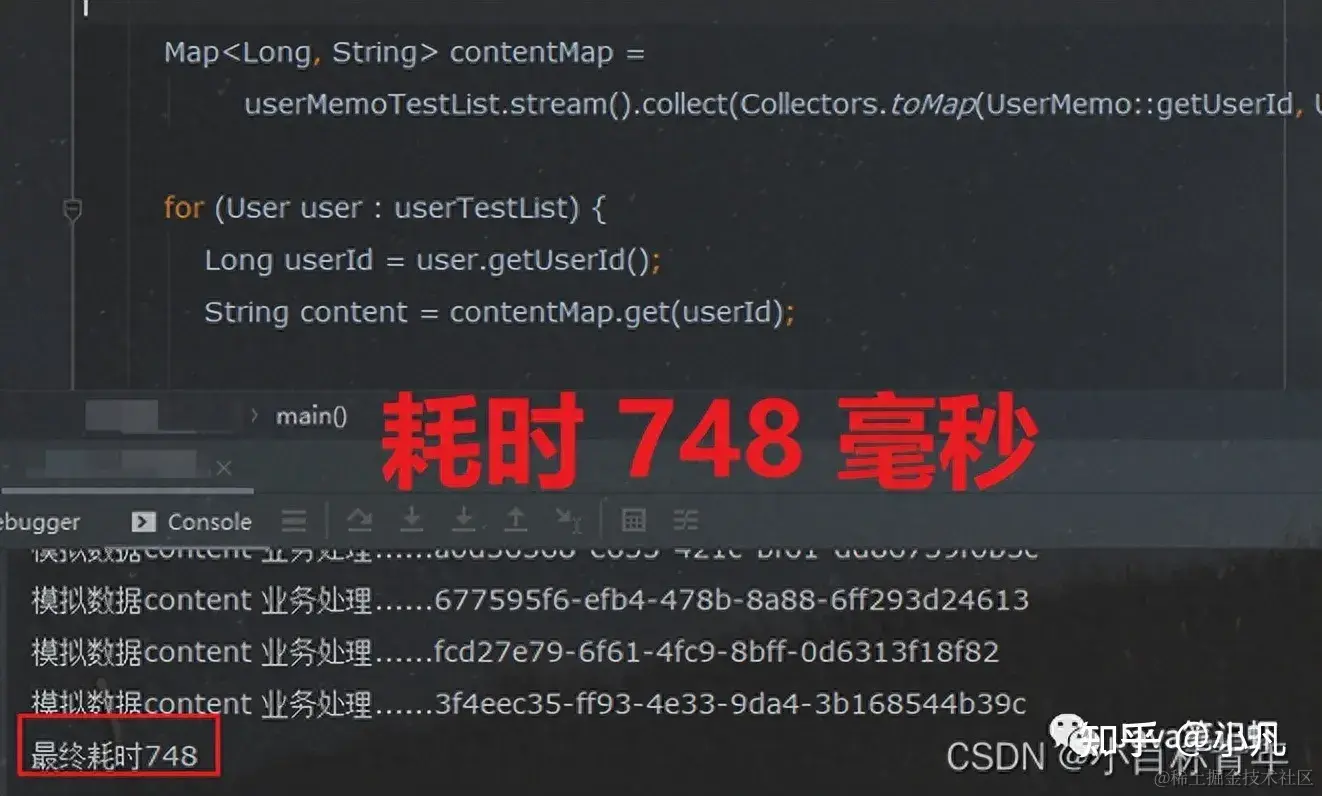 这其实就是时间复杂度,for循环嵌套for循环,就好比 循环每一个 user ,拿出 userId 需要在里面的循环从 userMemo list集合里面 按顺序去开盲盒匹配,拿出第一个,看看userId ,拿出第二个,看看userId ,一直找匹配的。