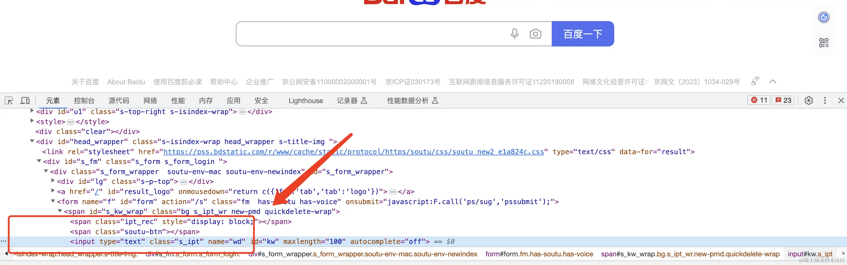 这里我们以一个打开百度搜索的场景,添加了百度输入框和百度一下按钮两个元素,首先需要获取到这两个元素的Xpath,如图,右键点击检查,点击左侧箭头指向按钮。