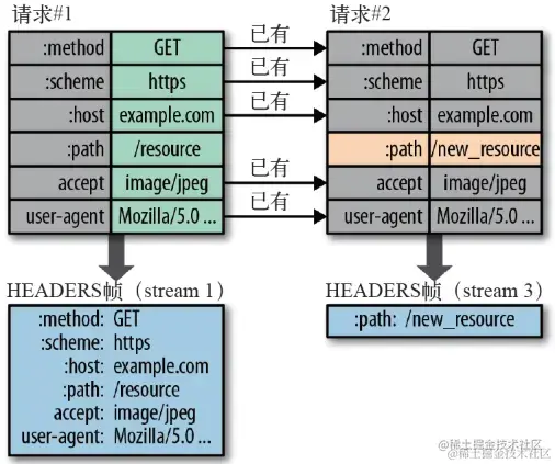 - 头信息压缩: HTTP/2 实现了头信息压缩,由于 HTTP 1.1 协议不带状态,每次请求都必须附上所有信息。所以,请求的很多字段都是重复的,比如 Cookie 和 User Agent ,一模一样的内容,每次请求都必须附带,这会浪费很多带宽,也影响速度。HTTP/2 对这一点做了优化,引入了头信息压缩机制。一方面,头信息使用 gzip 或 compress 压缩后再发送;另一方面,客户端和服务器同时维护一张头信息表,所有字段都会存入这个表,生成一个索引号,以后就不发送同样字段了,只发送索引号,这样就能提高速度了。