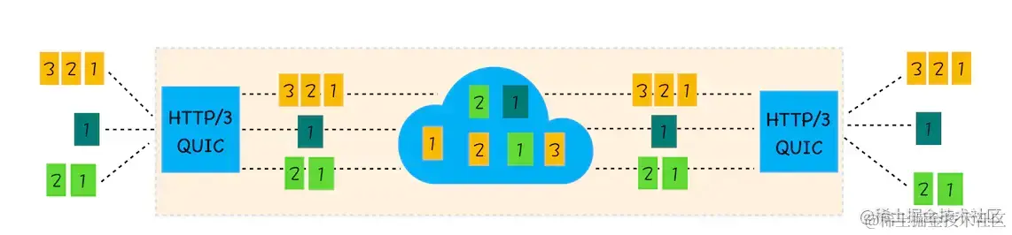 队头阻塞是由 HTTP 基本的“请求 - 应答”模型所导致的。HTTP 规定报文必须是“一发一收”,这就形成了一个先进先出的“串行”队列。队列里的请求是没有优先级的,只有入队的先后顺序,排在最前面的请求会被最优先处理。如果队首的请求因为处理的太慢耽误了时间,那么队列里后面的所有请求也不得不跟着一起等待,结果就是其他的请求承担了不应有的时间成本,造成了队头堵塞的现象。