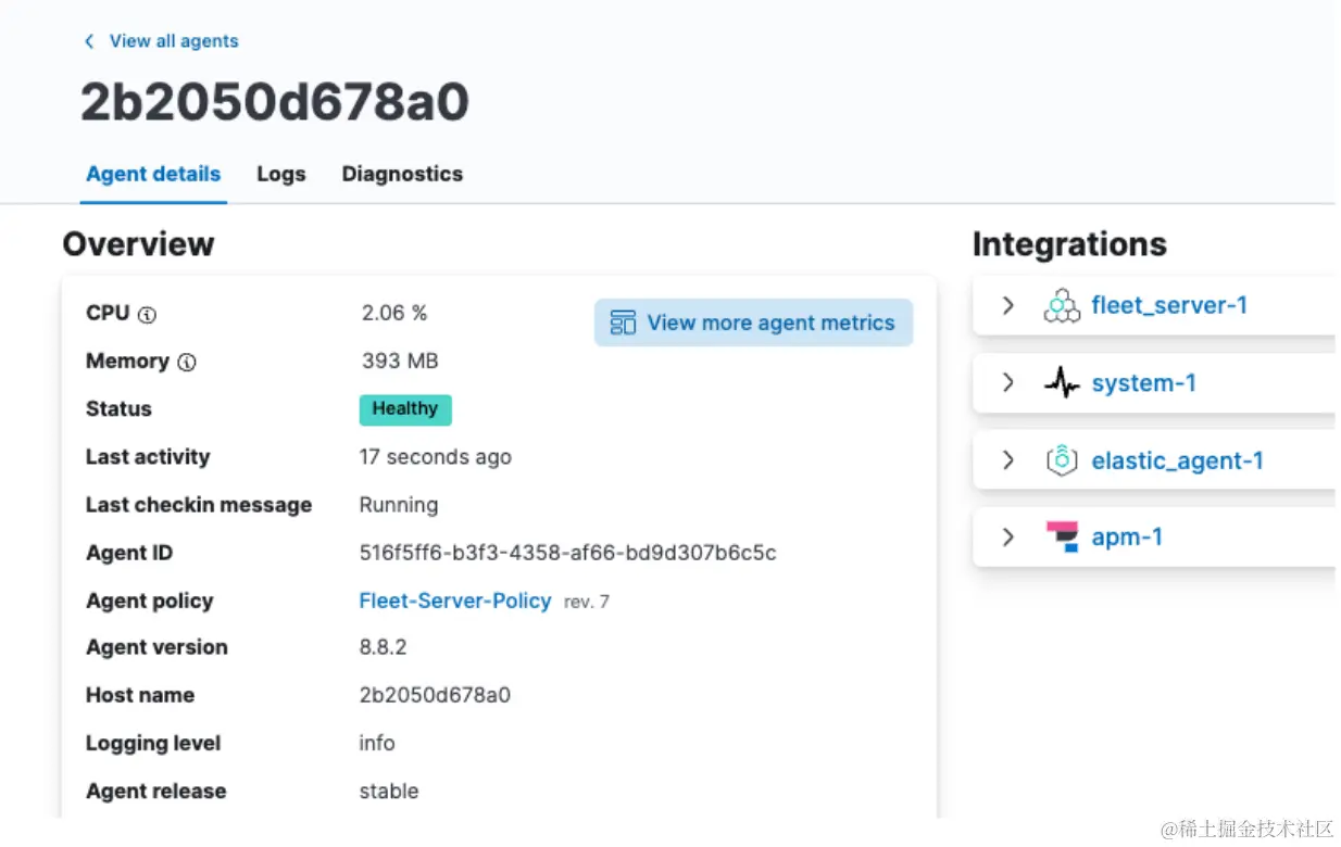 从这里,你还可以单击 “View more agent metrics” 以前往代理仪表板并查看其他数据。