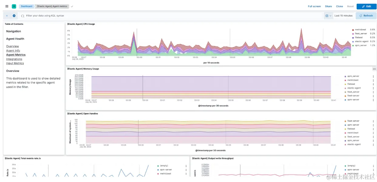 Elastic Agent 提供了一种统一的方式来启用主机对日志、指标和其他数据等各种数据类型的监控。 此外,它还提供安全威胁、操作系统数据查询、远程服务或硬件数据转发等保护。 代理简化并加速了整个基础设施的监控部署。 每个代理都与策略相关联,这些策略可以更新以合并新数据源、安全措施和附加功能的集成。