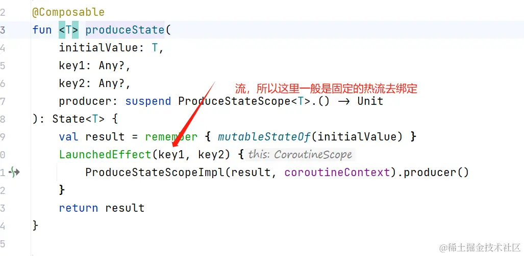因为 collectAsState 源码中如果流变化 那么这个携程函数也会重新运行