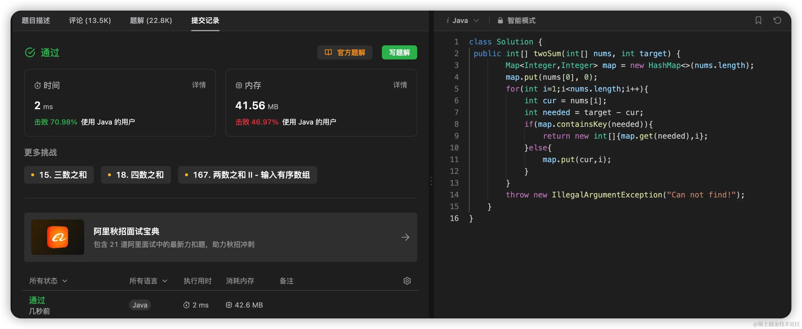 - 空间复杂度:O(n),哈希表里最多需要存n一1个键值对。