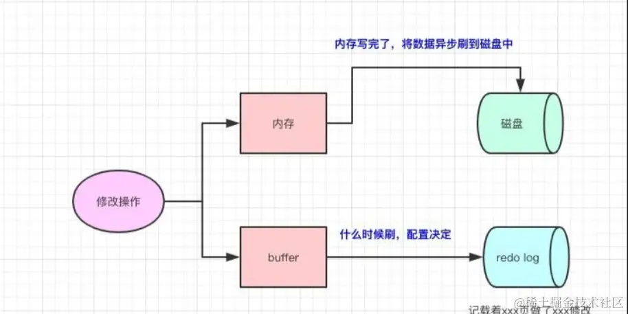 MySQL引入了redo log,内存写完了,然后会写一份redo log,这份redo log记载着这次在某个页上做了什么修改。