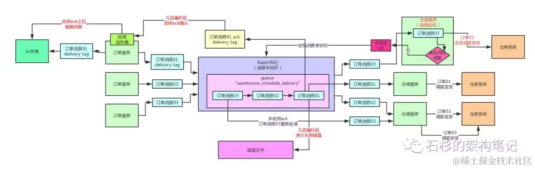 收到一个消息ack之后,就从kv存储中删除这条临时消息;收到一个消息nack之后,就从kv存储提取这条消息然后重新投递一次即可;也可以自己对kv存储里的消息做监控,如果超过一定时长没收到ack,就主动重发消息。