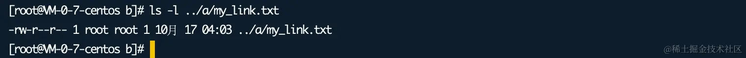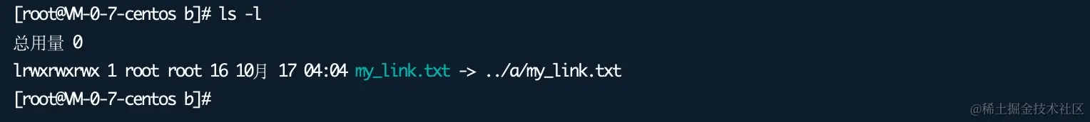 上述列表中 my_link.txt 为符号链接,大家可以看到其是以 l (表示链接)开头,名称显示它指向的文件。