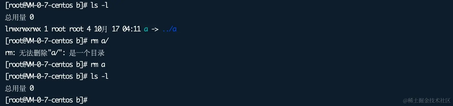 下图是一个删除目录软链接的示例: